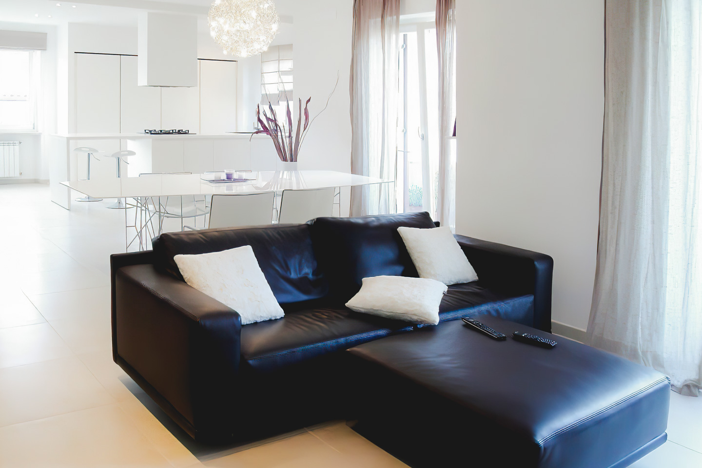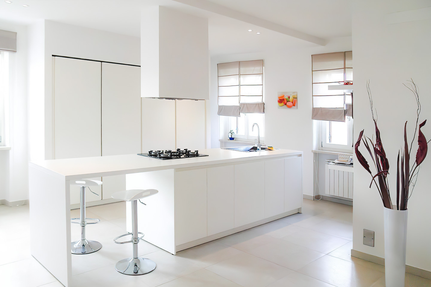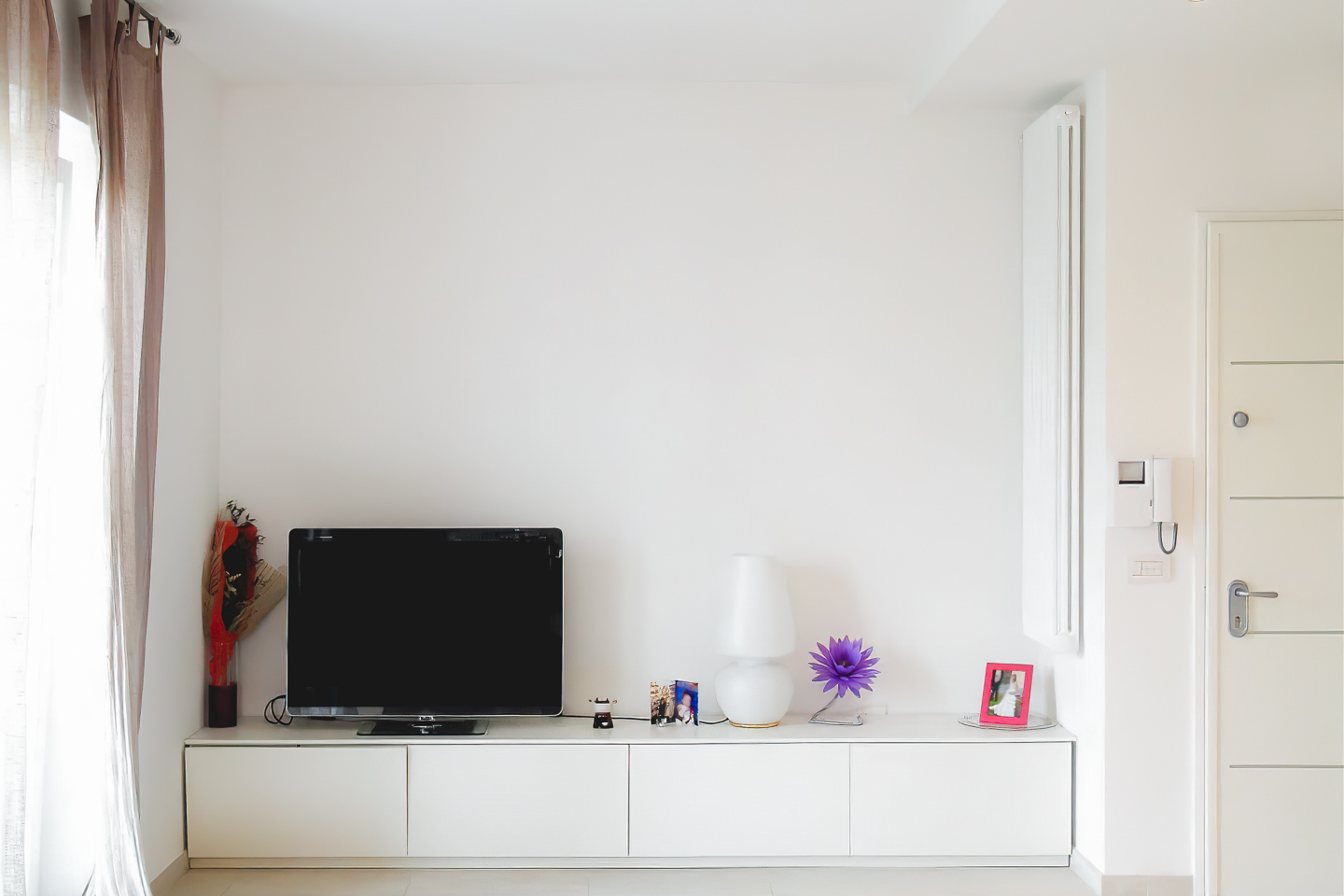 Il “black and white” di questo elegante appartamento sottolinea il desiderio del cliente di vivere in una casa minimale e calda allo stesso tempo. Il bianco e il nero degli arredi vengono declinati nelle sfumature del grigio dai toni  caldi delle pareti. Il risultato è un ambiente fresco, luminoso e accogliente.