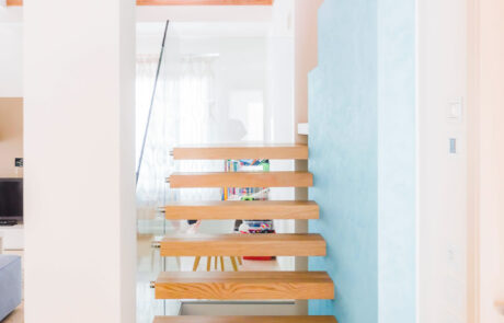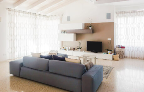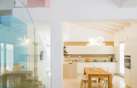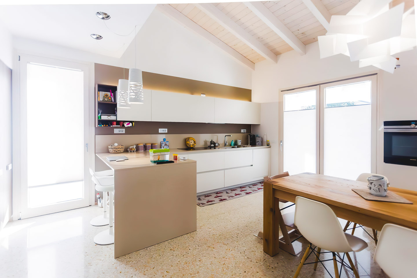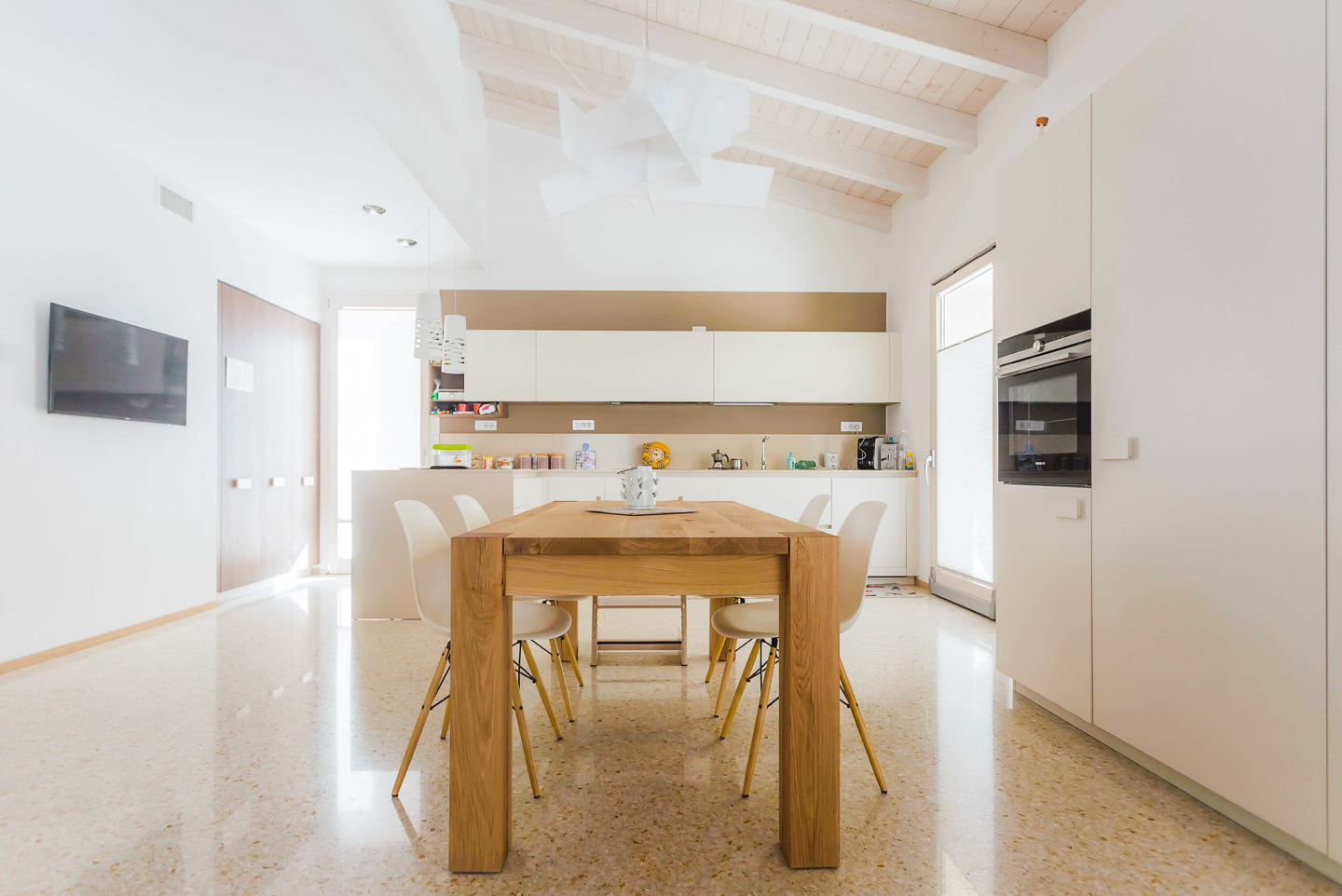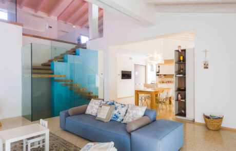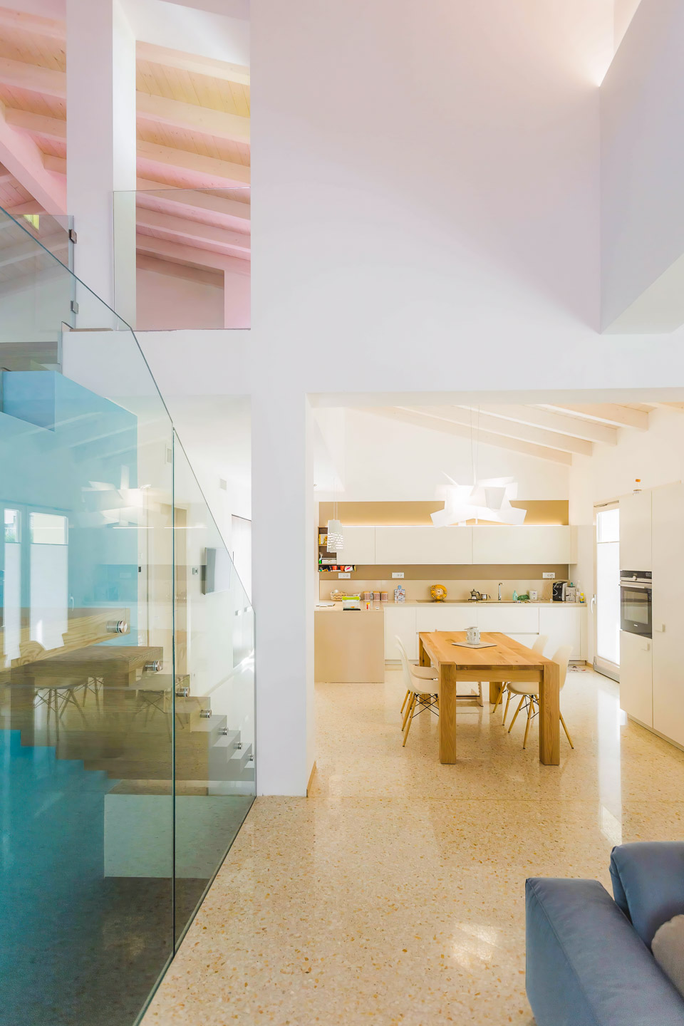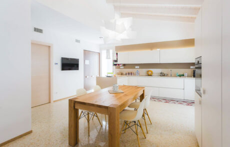 Una casa che ben si ambienta sulle colline veronesi dove l’utilizzo dei materiali, i colori e la struttura si collocano in armonia con il paesaggio. La stessa “mano” continua nell’arredamento con il sapiente utilizzo delle materie prime quali il legno e il pavimento in seminato veneziano. L’arredamento interno poi interpreta questa filosofia con l’utilizzo di forme semplici ed eleganti allo stesso modo, dove i colori sono i toni utilizzati e ripresi in tutta la casa.